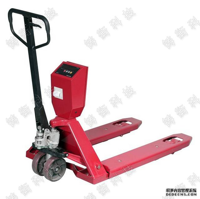 ①该叉车秤是指在小型手动液压升降搬运车基础上增加高精度称重传感器和智能化数字显示仪表而组成的称重系统;